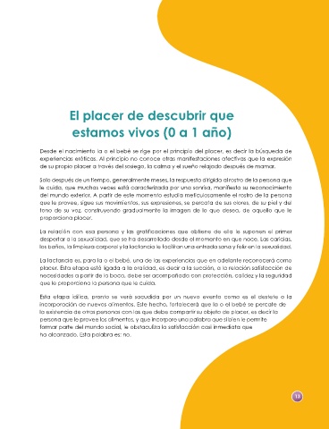 despertar a la sexualidad, que se ha desarrollado desde el momento en que nace. Las caricias,
