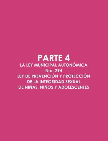 PartE 4 la lEy muniCiPal autonómiCa nro. 294 lEy dE PrEVEnCión y ProtECCión dE la intEgridad sExual dE niñas, niños y adolEsCEntEs